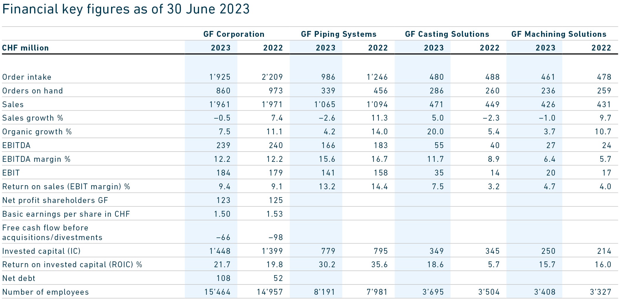 GF稳健的财务状况和全球分布,以及其战略2025的成功实施,使公司能够很好地应对全球建筑业的预期衰退趋势、欧洲天然气事业的低迷以及亚洲信息和通信技术市场的疲软。
